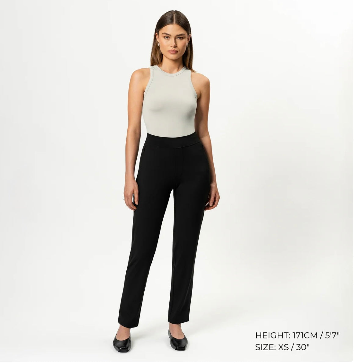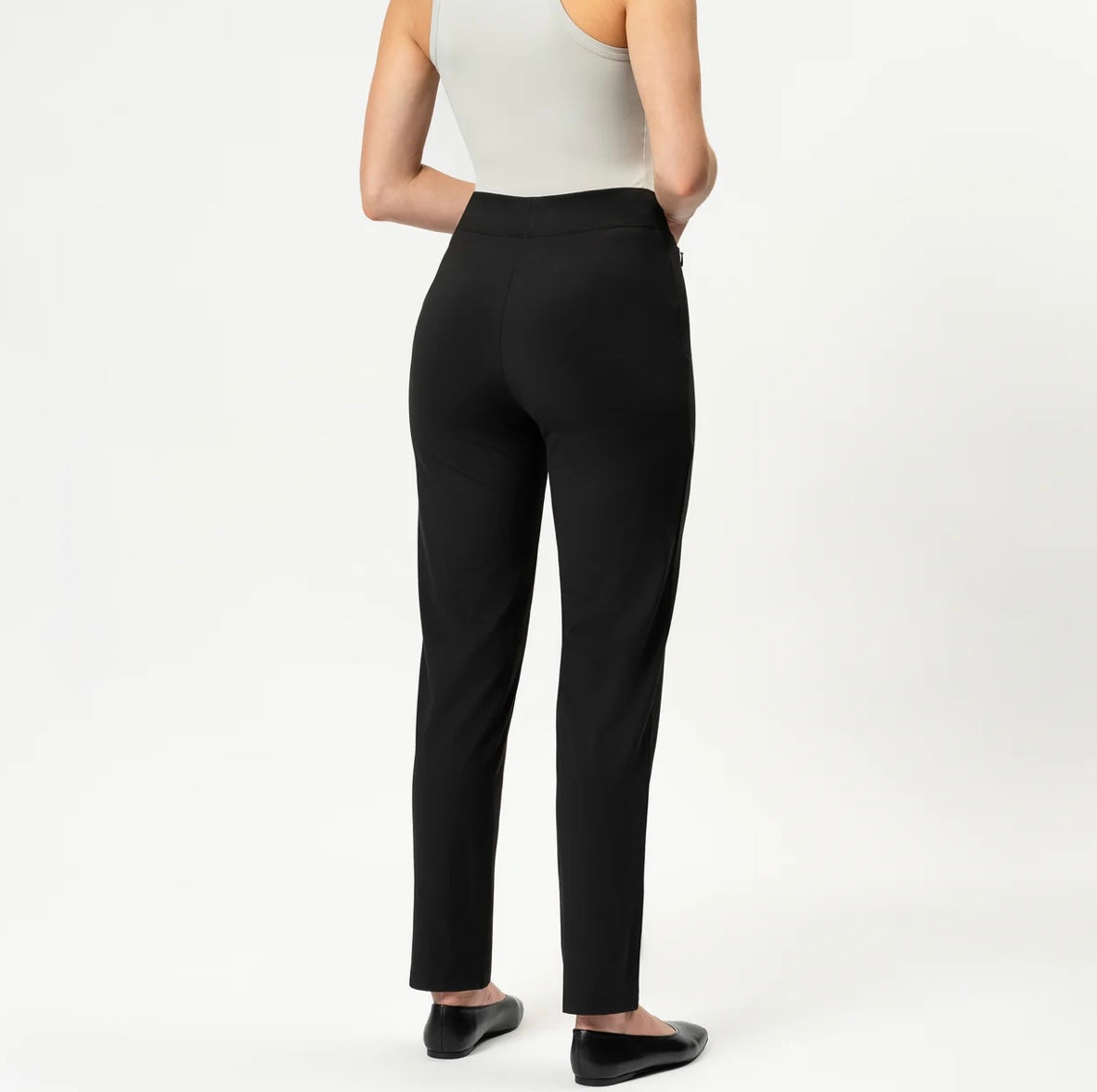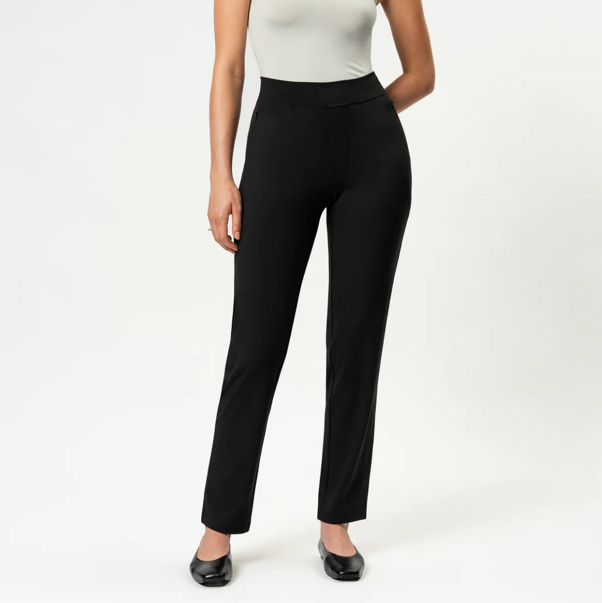 Dressbukse fra Five Units i behagelig passform. Buksa er høy i livet med knapp og skjult glidelåslukking. Lommer fremme med glidelås, hemper for belte. Flatterende skrå søm over kneet. God i størrelsen