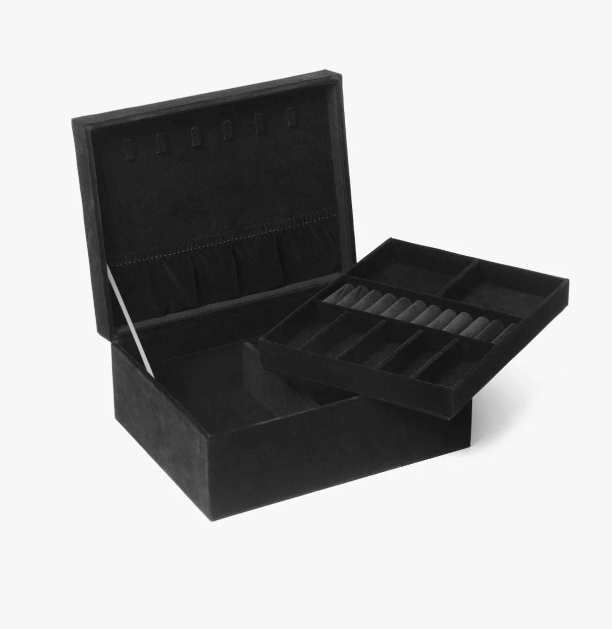 Du får også de flotteste smykkeskrin i flere størrelser. Runde, firkantet, med og uten glidelås.