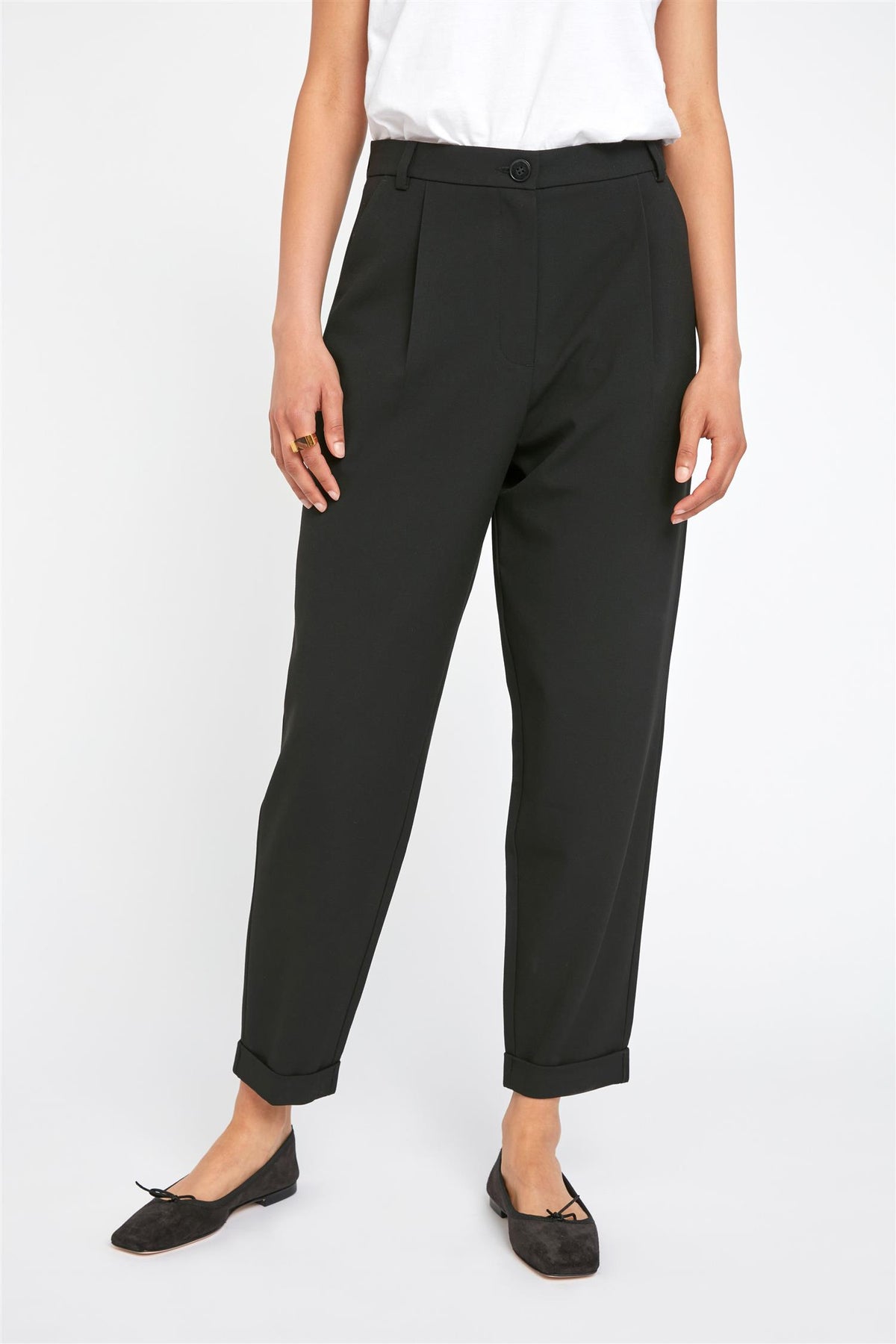 Fargen er sort, noe som gjør den tidløs og enkel å kombinere med andre plagg. Perfekt for deg som ønsker en allsidig og stilren bukse i garderoben.