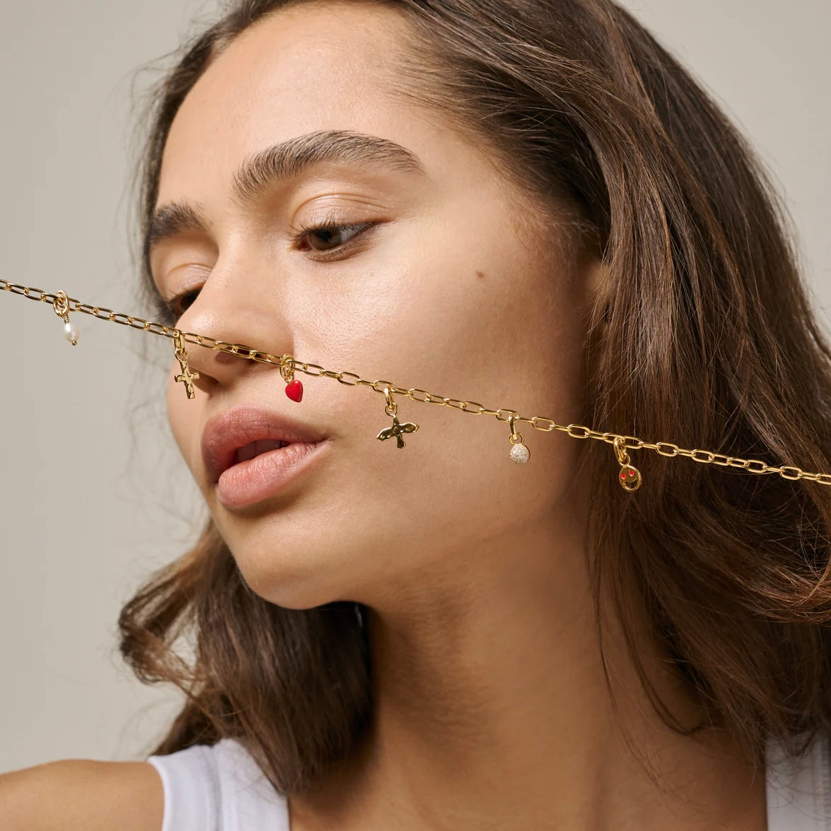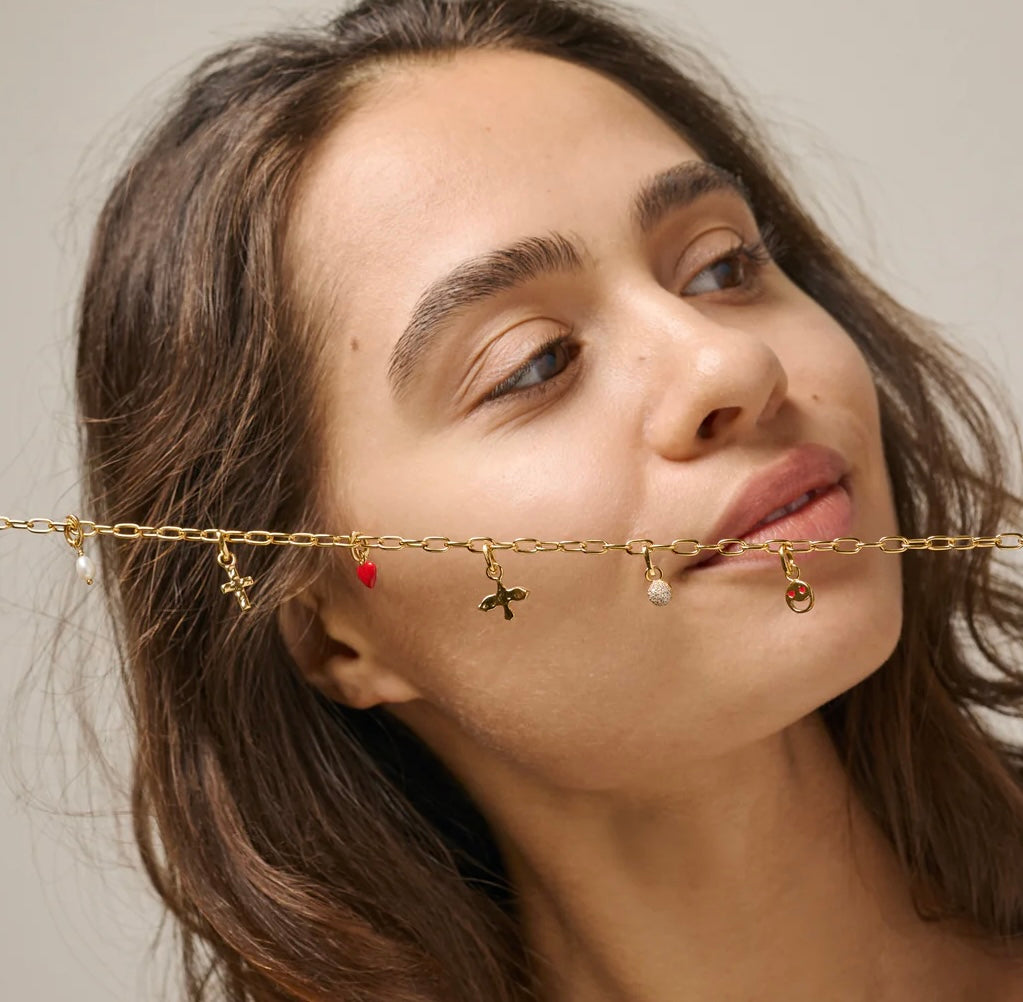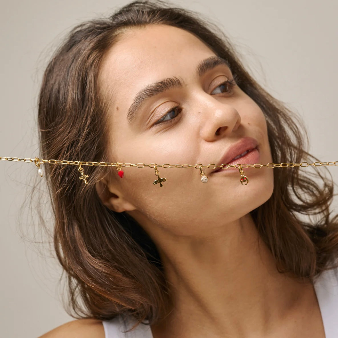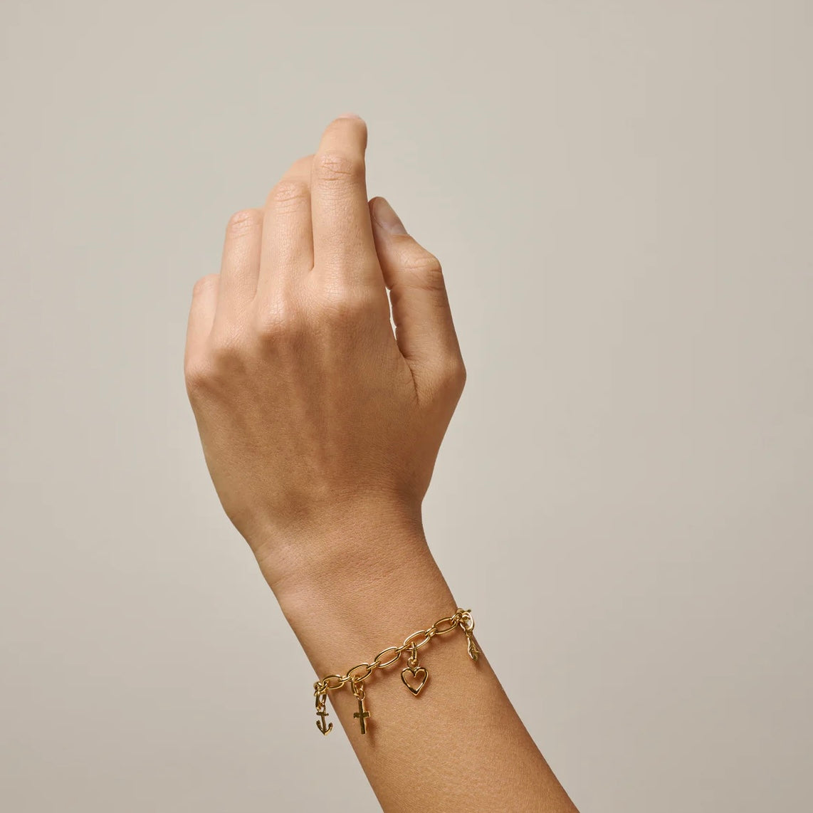 Simple Charm-armbåndet er en del av vårt charms-konsept, bestående av mange vakre, håndlagde charms som kan kombineres på utallige måter og legges til mange av våre stiler. Simple Charm-armbåndet består av ovale lenker der våre charms kan settes inn. Armbåndet er også vakkert i seg selv og med sin enkle design kan det enkelt kombineres med alle dine andre armbånd. Kneppet kan lukkes på hvilken som helst lenke, noe som gjør det til et svært fleksibelt armbånd i størrelse.