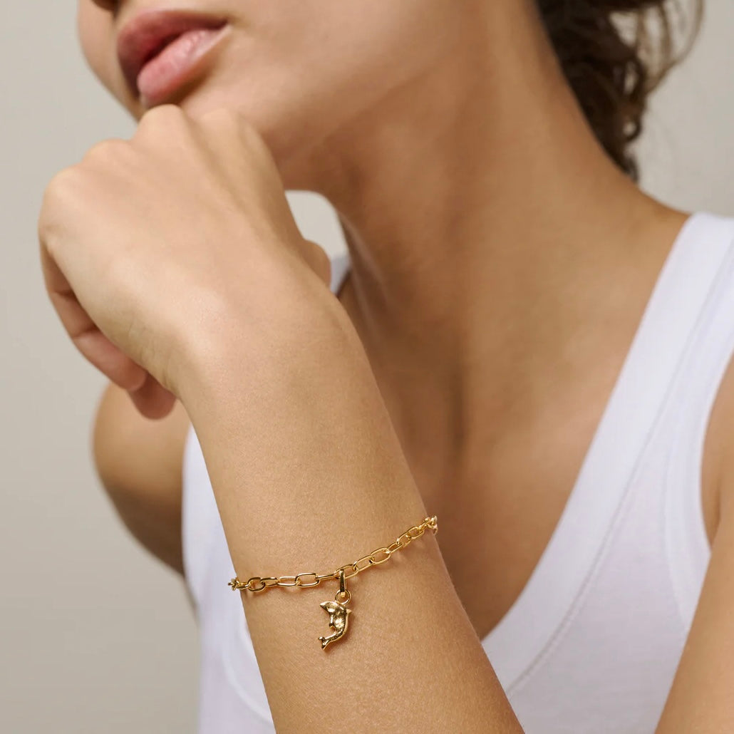 Om smykket:Joyful Dolphin er en del av vårt charms-konsept. Delfiner er kjent for sin høye intelligens og lekne natur. De bruker komplekse lyder for å kommunisere og kan til og med kjenne igjen seg selv i speil, noe som er en sjelden evne blant dyr. Delfinen er også et symbol på kjærlighet, liv og glede. Lukkemekanismen på Joyful Dolphin-vedhenget kan fjernes, og med den gjenværende løkken kan du feste delfinanheng på en stor del av våre hoops. Anhenget er spesielt beregnet for vår armbånd- og halskjedeserie kalt 'Charm', samt våre enkle halskjeder og armbånd.
