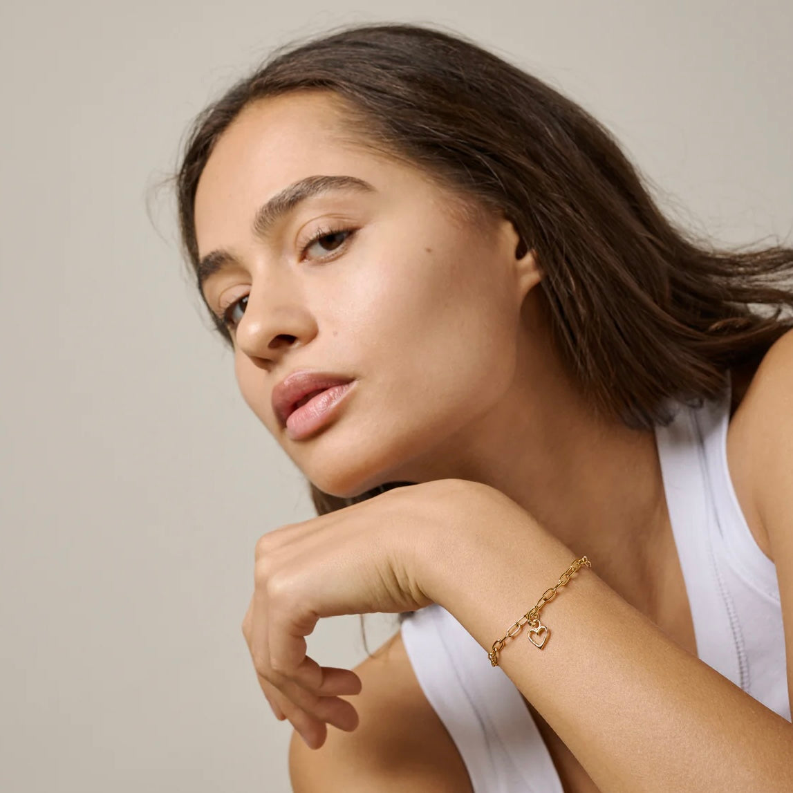 Om smykket:Amore betyr kjærlighet, og det er akkurat det dette armbåndet uttrykker. Kjærlighet til noen du er nær, kjærlighet til livet, eller kjærlighet til deg selv. Det sies ikke bedre enn med dette vakre armbåndet, laget i sterlingsølv, belagt med 18 karat gull. Den fasjonable kjeden og hjerteanhenget skinner vakkert, og viser hele verden all kjærligheten du besitter.