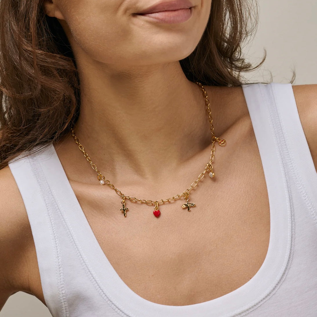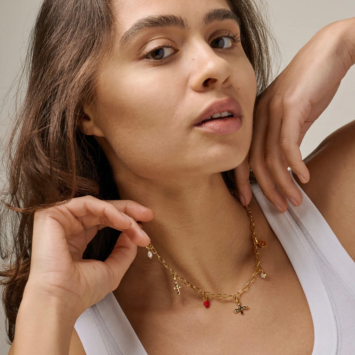 Om smykket:Protective Cross er en del av vår charms konsept. Det gylne korset representerer tro og styrke, som du alltid kan ha med deg. Det er som en lykkebringende amulett som passer på deg, og minner deg om at du aldri er alene. Lukkemekanismen på Protective cross charm kan fjernes, og med den gjenværende løkken kan du feste korset på en stor del av våre hoops. Vedhenget er også beregnet for våre armbånd og halskjede-serie kalt 'Charm', samt våre enkle halskjeder og armbånd.